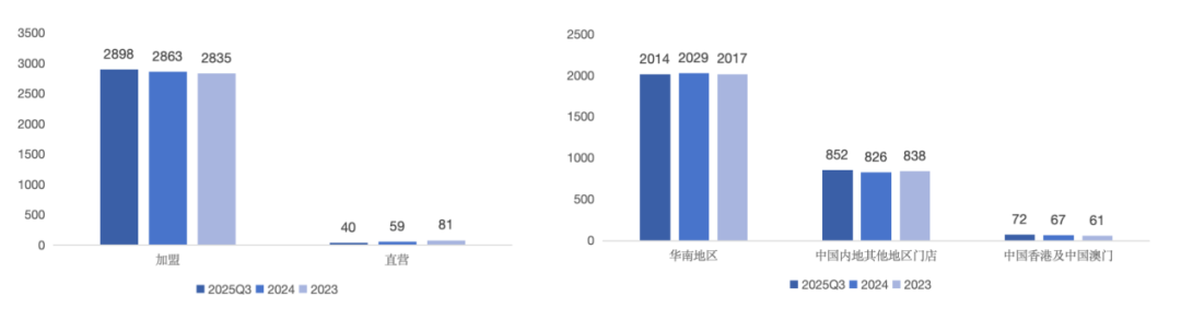 但這并不意味著公司處于“靜止”狀態(tài)。相反,內(nèi)部的門店迭代比較劇烈。2023年至2025年三季度期間,公司累計新開門店908家,卻同時也關(guān)閉了916家。這種“開一家、關(guān)一家”的高頻更替,更像是一種存量市場內(nèi)的優(yōu)化,而非真正的增量擴張。