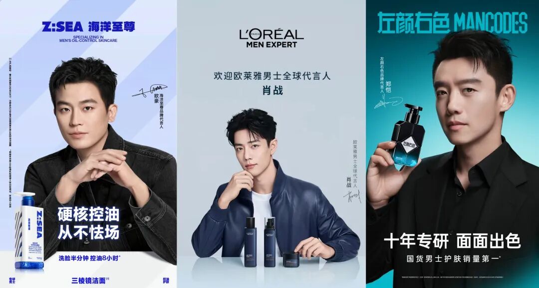 此外,不少男士護膚品牌陸續(xù)官宣了代言人:2025年5月,海洋至尊官宣歐豪為品牌代言人;同年12月5日歐萊雅男士官宣肖戰(zhàn)為全球代言人;三天后國貨男士護膚品牌左顏右色官宣鄭愷……