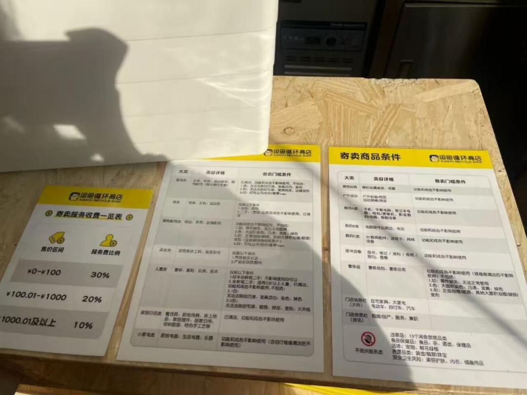 以杭州拱墅區(qū)的首店為例,該店于2024年初開業(yè),是閑魚首家線下直營(yíng)的循環(huán)商店,定位為社區(qū)型全品類寄賣門店。在品類設(shè)置上,門店幾乎覆蓋了閑魚線上二手交易的主要結(jié)構(gòu)——服飾、鞋類、美妝、箱包配飾、小家電等被劃分為16個(gè)大類,并通過明確的寄賣門檻,對(duì)商品狀態(tài)、季節(jié)性和安全風(fēng)險(xiǎn)進(jìn)行嚴(yán)格篩選,由平臺(tái)統(tǒng)一完成估價(jià)、上架和售賣。