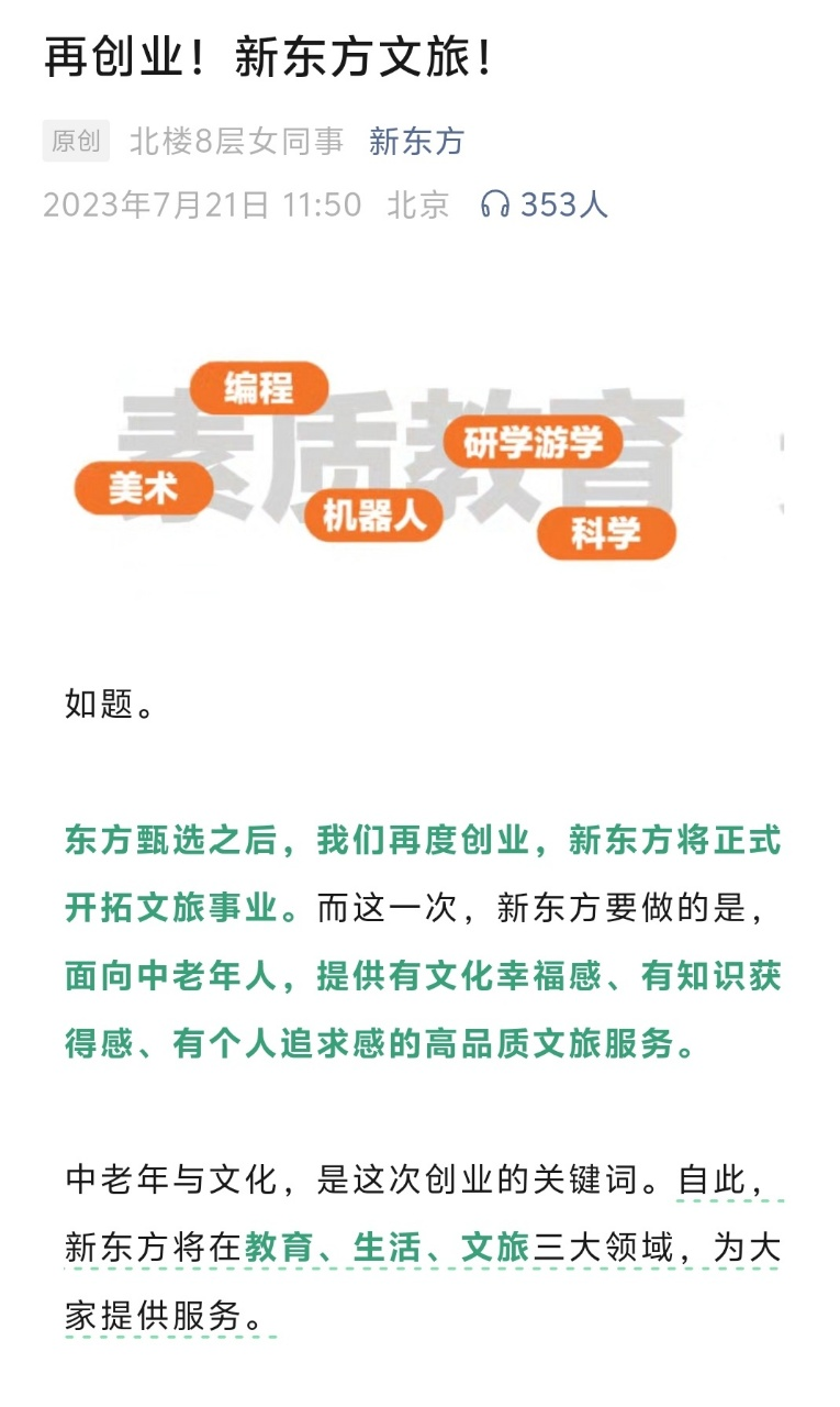 同年7月,新東方正式官宣開拓文旅事業(yè),完成了從戰(zhàn)略規(guī)劃到業(yè)務落地的關鍵跨越。