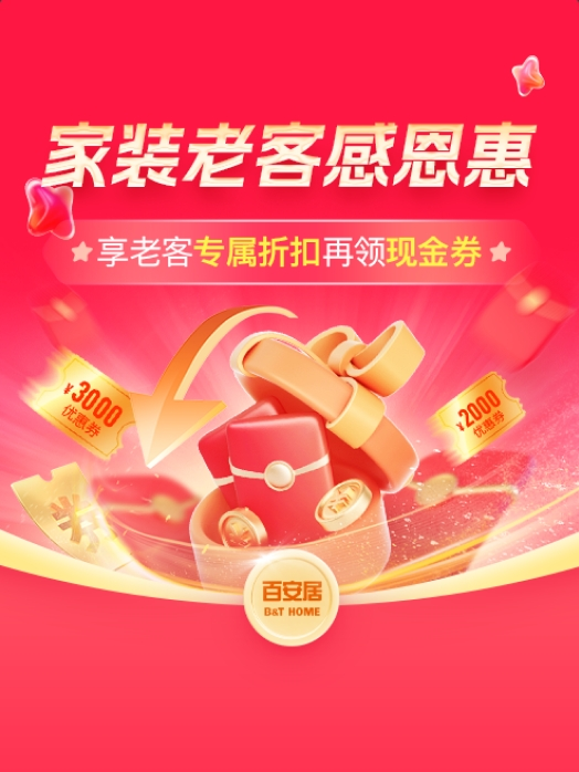 與此同時,百安居也為老客戶帶來專屬的“老帶新簽約禮”,老客戶成功推薦親友購買全屋定制可獲贈大禮包、贏取品牌好禮;老客戶二次裝修或推薦新客戶裝修享返現優(yōu)惠,最高可享5000元現金券,多重感恩回饋與新春的溫暖一同傳遞。