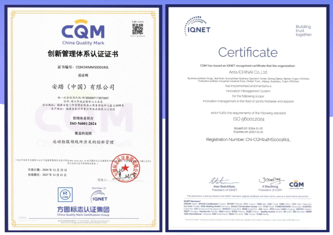 獲得IQNET認(rèn)證,意味著安踏從戰(zhàn)略布局到成果轉(zhuǎn)化的全鏈路創(chuàng)新體系已具備全球公信力與互認(rèn)性,將顯著增強(qiáng)其國(guó)際競(jìng)爭(zhēng)力。