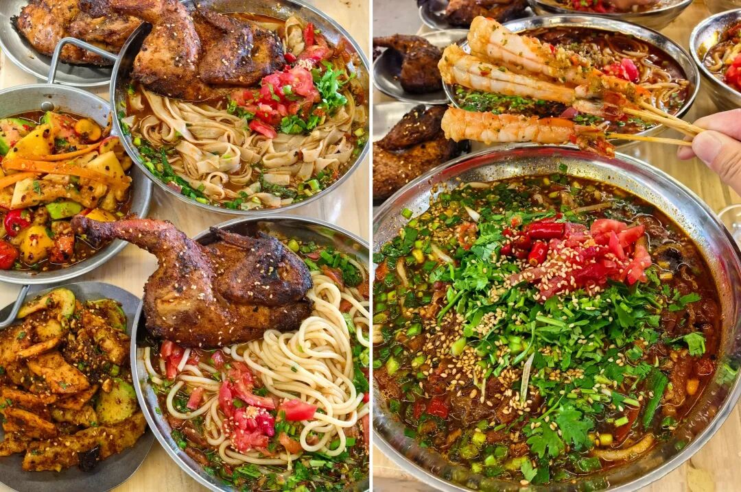 這是烤雞米線迅速走紅的關(guān)鍵。它不僅好吃,還足夠“好看”。半只雞直接擺在碗邊或鐵架上,本身就是天然的社交媒體傳播素材。