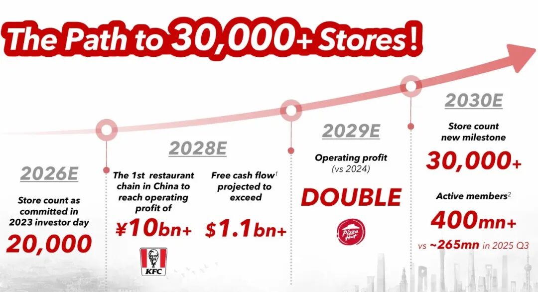 在投資者日上,公司重申了其宏大的增長目標:2026年門店總數(shù)達到2萬家,2028年達到2.5萬家,2030年突破3萬家。