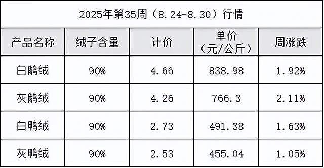 比如說,在2025年前三季度的時候,羽毛(白鵝毛標準毛)均價每公斤停留在535元區(qū)間,同比漲幅雖收窄至3%,卻仍是2020年價格的2.8倍。羽絨(90%白鵝絨)報價繼續(xù)上揚,9月批次每公斤已升至980元,較去年同期再漲7%。原料成本占羽絨服出廠成本比重由去年的62%抬升到68%,中小加工廠利潤被壓縮至5%以內,行業(yè)加速向規(guī);S集中。