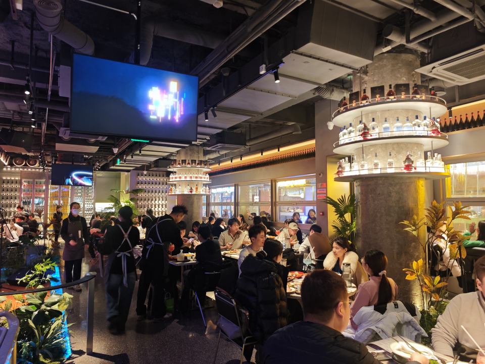 盡管目前該店僅支持線下取號預約,但開業(yè)初期的客流量已十分可觀。在非周末的晚間,現(xiàn)場排位等號組數(shù)仍能超過80組,這直觀印證了其“餐+酒”模式與商圈夜間需求的精準匹配。