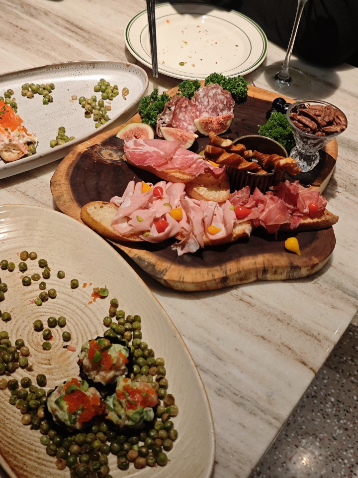 刺身牛肉切薄片擺盤精致,淋上醬汁,分量適配下酒不浪費;薄底披薩金黃酥脆、邊緣微焦,小尺寸(6/8寸)四五十元,適合2-3人分享;