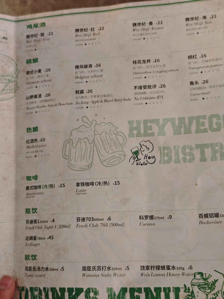 魏世紀率先在餐酒吧領域打出“價格顛覆”牌,將酒飲定價直接拉到“快餐級”區(qū)間競爭。酒單結構清晰: