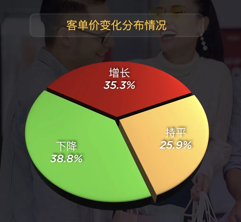 而客單價的變化則折射出消費心態(tài)的轉(zhuǎn)變:38.8%的項目客單價下降,超過35.3%的上升占比,“逛得多、買得精” 的理性消費趨勢已成為行業(yè)共識。