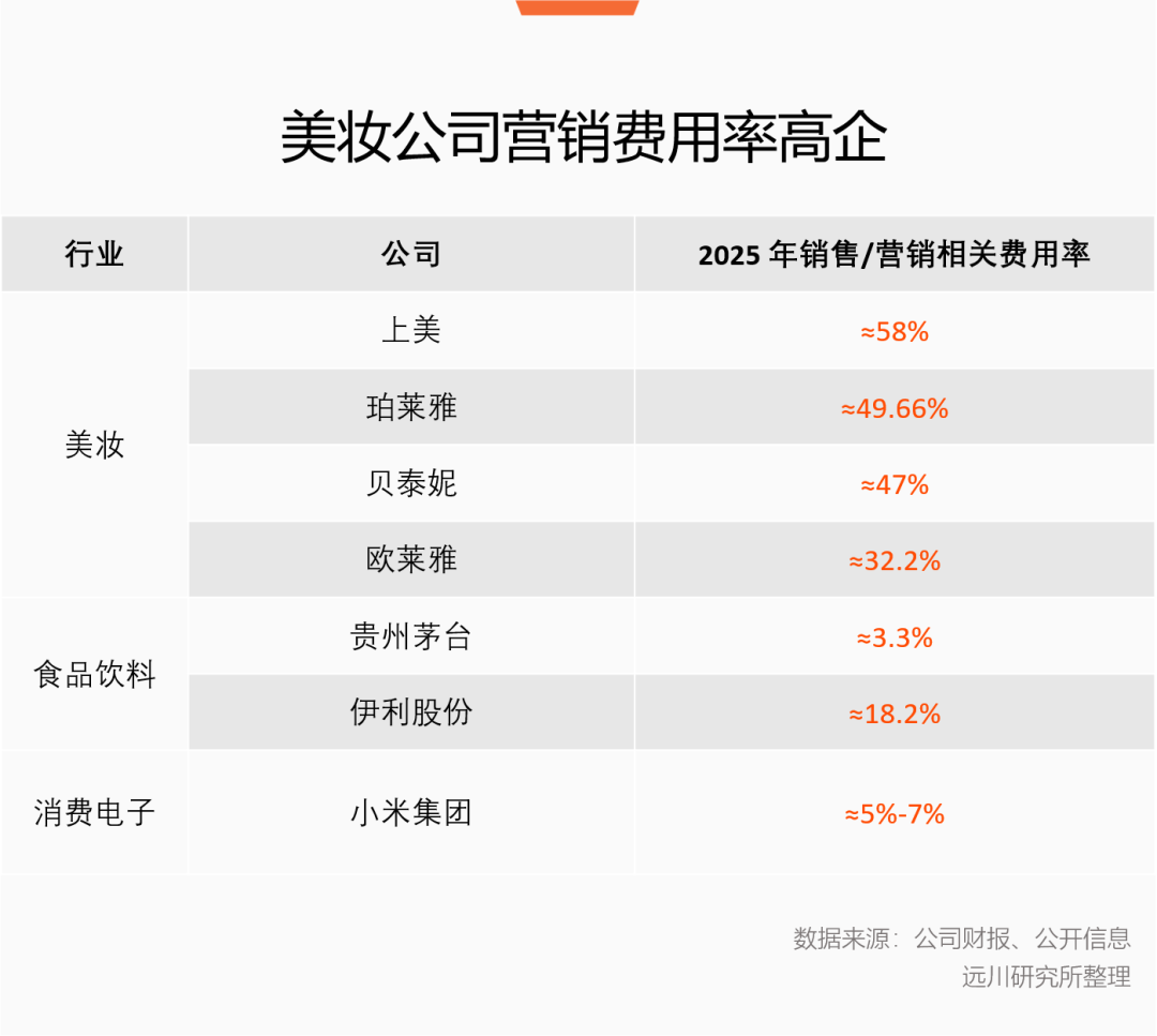 這種同質(zhì)化造就了美妝品牌對流量的天生饑渴。翻開美妝上市公司的財(cái)報(bào),會發(fā)現(xiàn)營銷費(fèi)用占比都高得一騎絕塵。