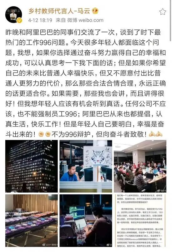 “我個(gè)人認(rèn)為,能做996是一種巨大的福氣,很多公司、很多人想996都沒有機(jī)會(huì)。如果你年輕的時(shí)候不996,你什么時(shí)候可以996?”
