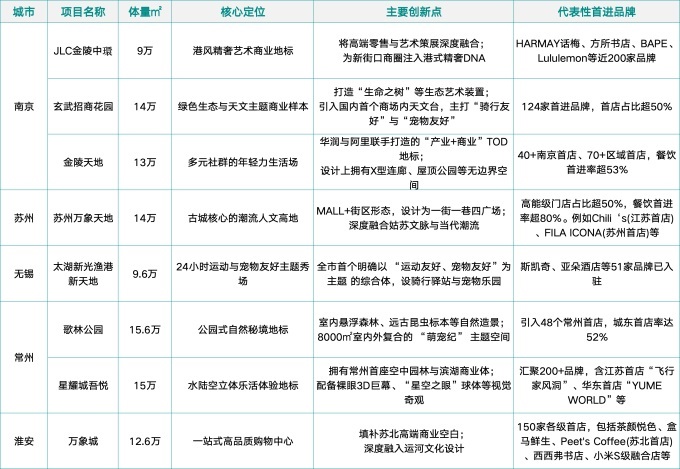 2025年江蘇部分新開(kāi)業(yè)商業(yè)項(xiàng)目對(duì)比 整理:方湖 制表:聯(lián)商網(wǎng)