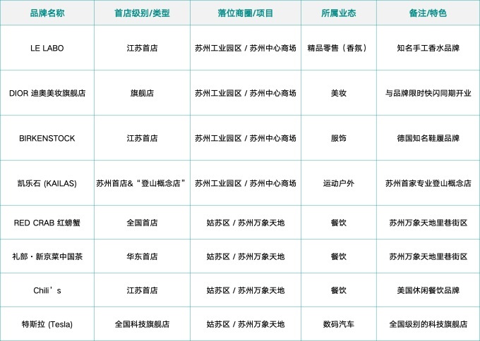 “下沉”的成功,離不開(kāi)政府“有形之手”構(gòu)建的系統(tǒng)性支撐。從省級(jí)層面推動(dòng)“首發(fā)經(jīng)濟(jì)”建設(shè),到蘇州工業(yè)園區(qū)提供“首店一件事”全鏈條服務(wù),政策導(dǎo)向已從簡(jiǎn)單的招商引資,轉(zhuǎn)向培育創(chuàng)新生態(tài)。政府通過(guò)規(guī)劃引導(dǎo)、流程優(yōu)化與平臺(tái)搭建,為商業(yè)資源的下沉與本土品牌的孵化提供了肥沃的土壤,實(shí)現(xiàn)了市場(chǎng)活力與公共服務(wù)的同頻。下面匯總了一些代表性的知名首店案例: