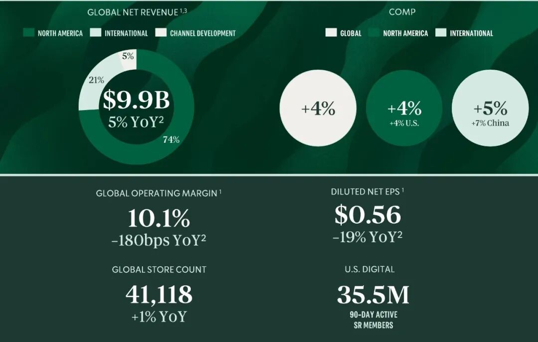 在中國市場,第一季度星巴克同店銷售額增長7%,其中交易量增長5%、客單價增長2%,成為國際業(yè)務(wù)的亮點。CEO倪睿安表示,中國團隊通過產(chǎn)品創(chuàng)新,如茶飲系列、文化相關(guān)營銷、外賣優(yōu)化,成功穩(wěn)定交易量下滑趨勢,“中國業(yè)務(wù)已回歸增長軌道”。
