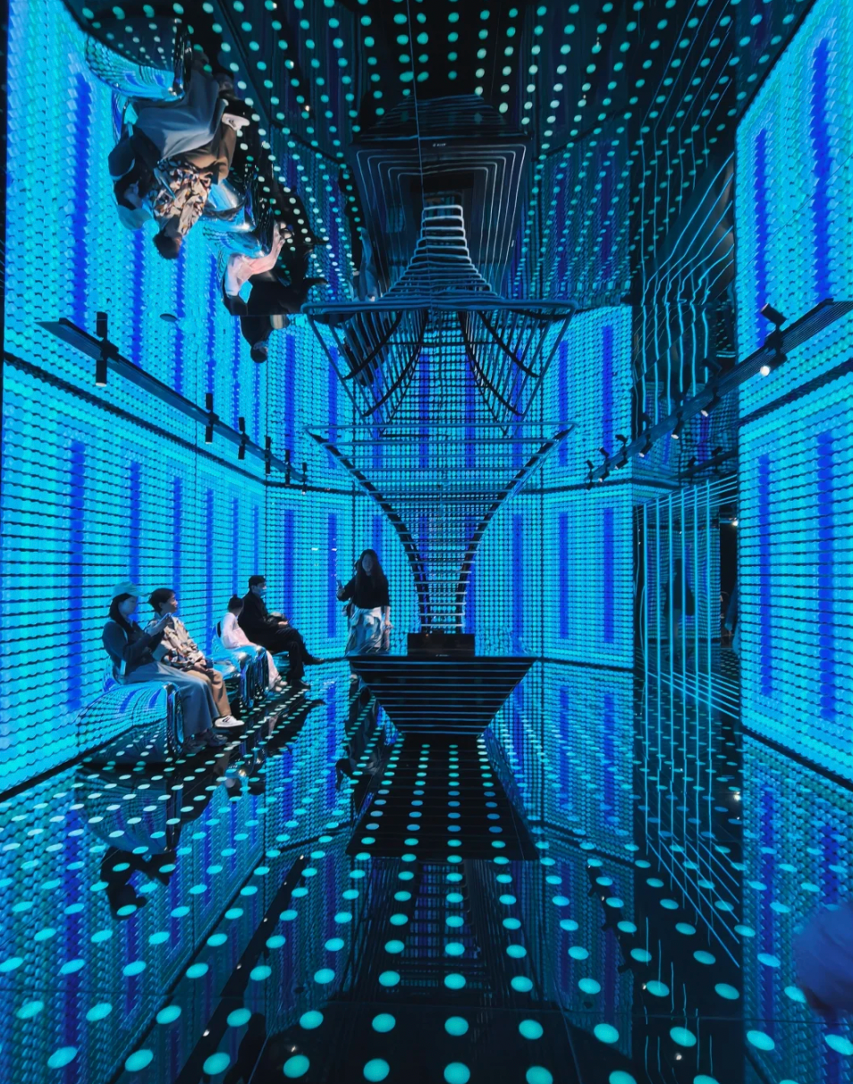 更顛覆性的創(chuàng)作在二期3-6層。一個名為 “德基藝術(shù)商業(yè)市集” 的奇幻世界被打造出來。這里每一層都是一個獨(dú)立的主題夢境:3樓的“異次元新境”、4樓的“超現(xiàn)實(shí)海域”、5樓的“霓幻未來城”、6樓的“游影卷間集”。藝術(shù)裝置不再是高高在上的陳列,而是與潮流首店、手作工坊、特色小食無縫交融的背景與主角。顧客在這里的身份,從“消費(fèi)者”變成了“探險(xiǎn)者”和“參與者”。