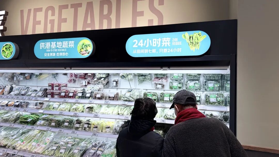 門店首次引入“本地菜”專區(qū),集中陳列來自崇明島的時令蔬菜,搭建起本地農(nóng)產(chǎn)品直達(dá)餐桌的快捷通道。