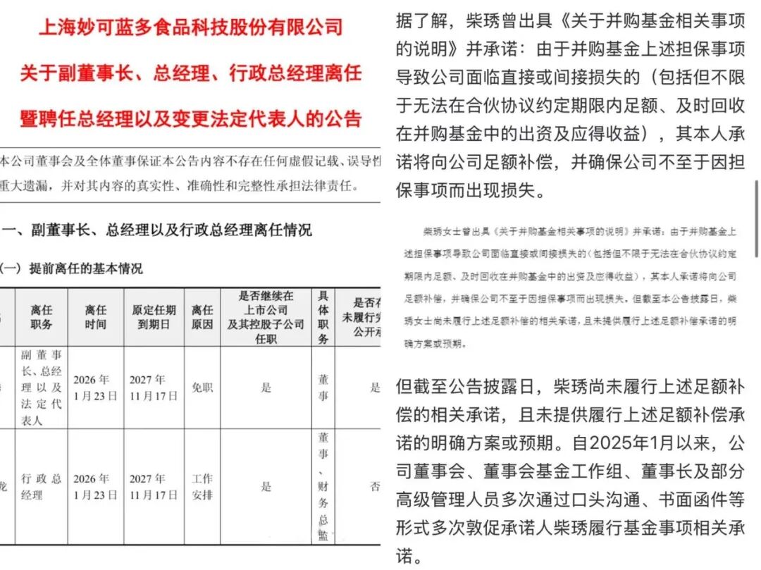 2026年1月25日晚,妙可藍(lán)多發(fā)布了一紙公告,在其中罕見用了“免職”的字眼。