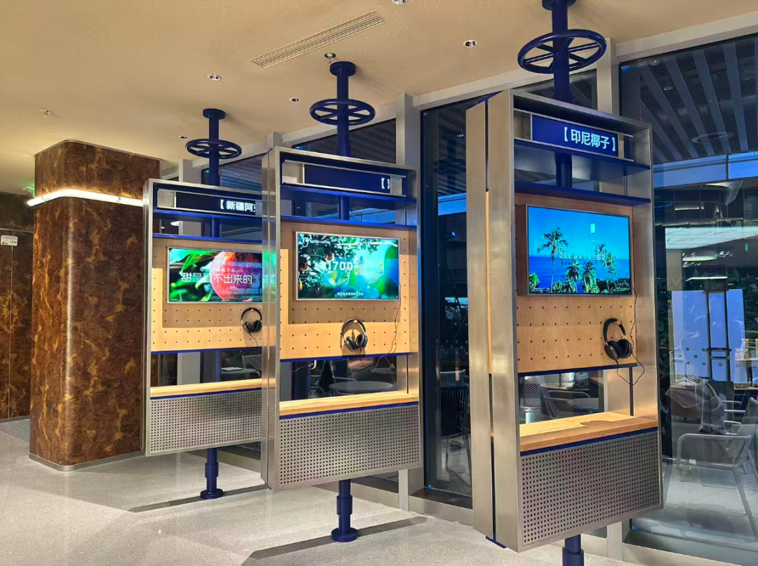 此外,紅餐網還留意到,門店二樓還設置了展示瑞幸咖啡豆及椰子等原材料產區(qū)的互動裝置,消費者可以戴上耳機體驗。另一側則開設了零售區(qū),用來展示掛耳、咖啡豆和咖啡液等產品。