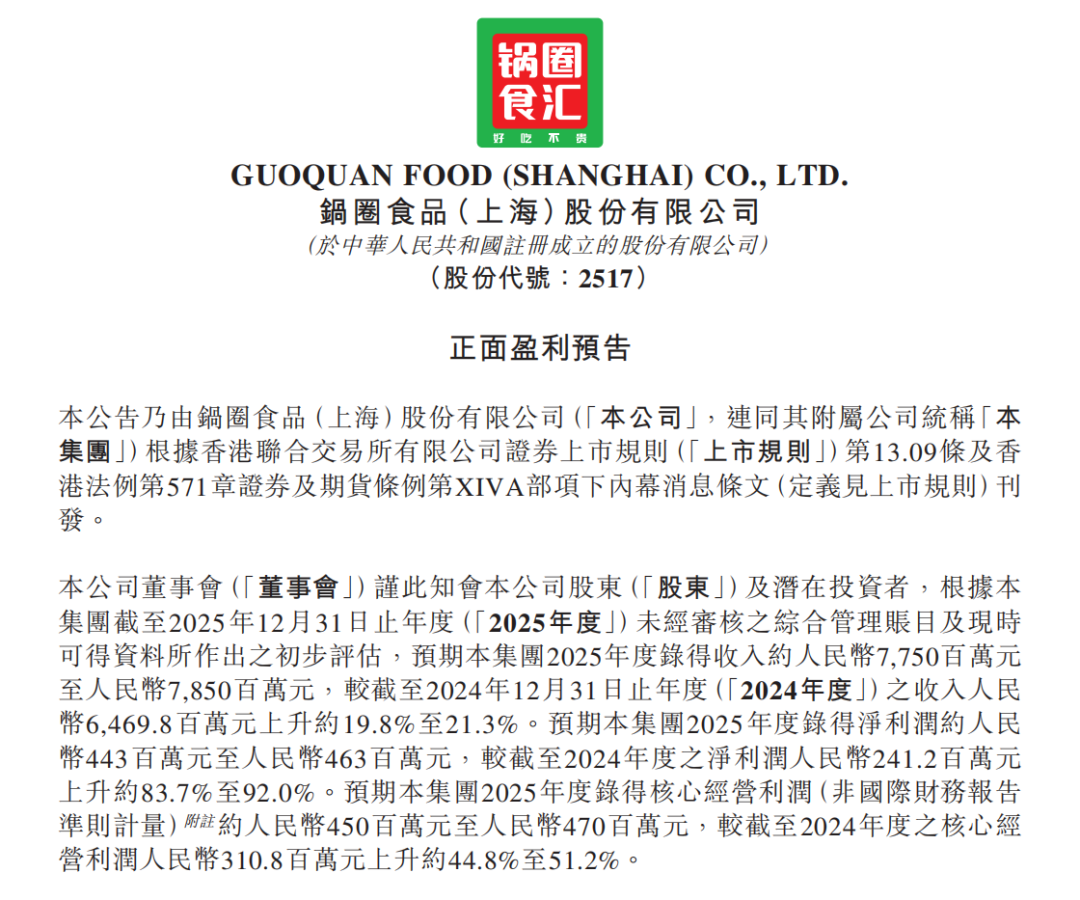 鍋圈2025業(yè)績(jī)預(yù)告,圖源:鍋圈官方微信公眾號(hào)