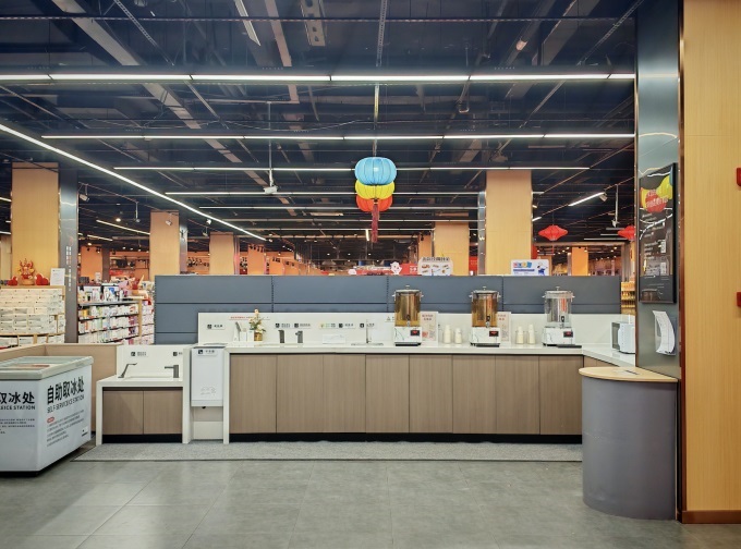 (4)顧客服務(wù):調(diào)改前,嘉百樂(lè)以賺錢(qián)為目標(biāo),傷了很多顧客的心,這不僅僅體現(xiàn)在價(jià)格、品質(zhì)上,更體現(xiàn)在超市的每一處細(xì)節(jié)中。嘉百樂(lè)門(mén)店原先的布局設(shè)計(jì)對(duì)顧客很不友好,強(qiáng)制性的動(dòng)線設(shè)計(jì),使顧客必須走完整個(gè)賣(mài)場(chǎng)到出口才能結(jié)賬;整個(gè)賣(mài)場(chǎng)就像是聯(lián)營(yíng)商的倉(cāng)庫(kù),雜亂無(wú)章。而經(jīng)過(guò)調(diào)整后的嘉百樂(lè)在場(chǎng)景設(shè)計(jì)上,踐行了人性化的改造理念。出入口均設(shè)置了收銀臺(tái),全場(chǎng)撤除了各類(lèi)廣告招貼,中島貨架降低至1.6米,拓寬通道,優(yōu)化布局與照明,打造出明亮且通透的空間感,增設(shè)洗手臺(tái)、直飲水、微波爐、寵物安置區(qū)等便民設(shè)施。