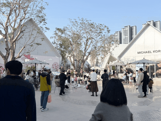 MOMO在2月1日的下午實探萬象濱海購物村,正值周末的人流高峰期,現(xiàn)場幾乎可以用“人山人!彼膫字來形容。