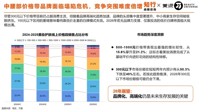 近期知行戰(zhàn)略咨詢聯(lián)合美π發(fā)布的《2025美妝護膚行業(yè)年度洞察報告》的價值,不僅在于及時點明“70%流量雙雄格局”這一結(jié)構(gòu)性特征,更在于能夠:第一,進行跨平臺的深度數(shù)據(jù)分析,揭示同一品類在不同渠道的增長邏輯與競爭生態(tài)差異;第二,前瞻性地識別出如青少年護膚、妝械結(jié)合等已被市場驗證的增長賽道;第三,提供渠道適配的策略框架,幫助品牌診斷自身在各渠道中的定位與機會。