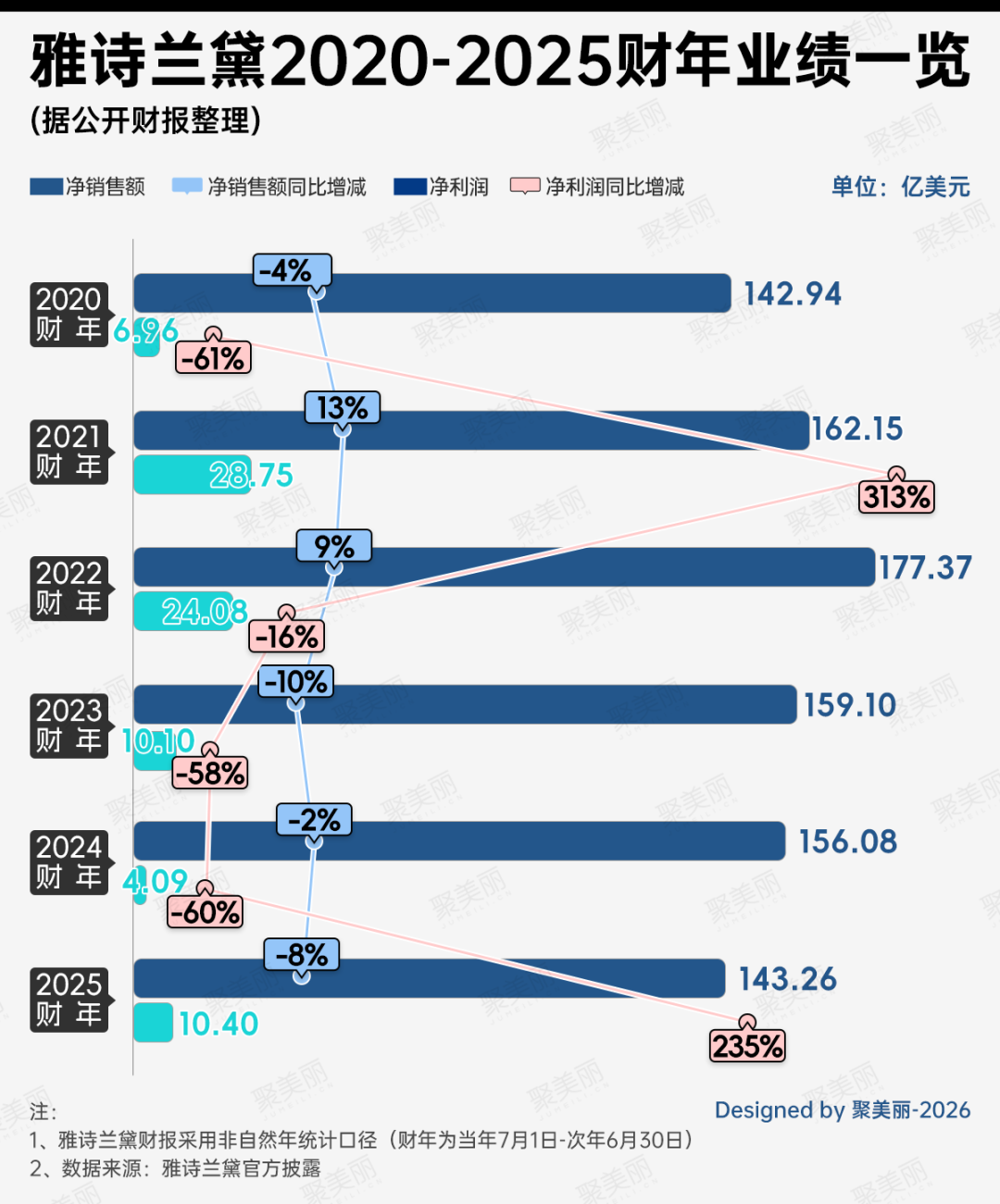 信息來(lái)源:雅詩(shī)蘭黛2026財(cái)年Q2財(cái)報(bào)、雅詩(shī)蘭黛官網(wǎng)、聚美麗往期報(bào)道