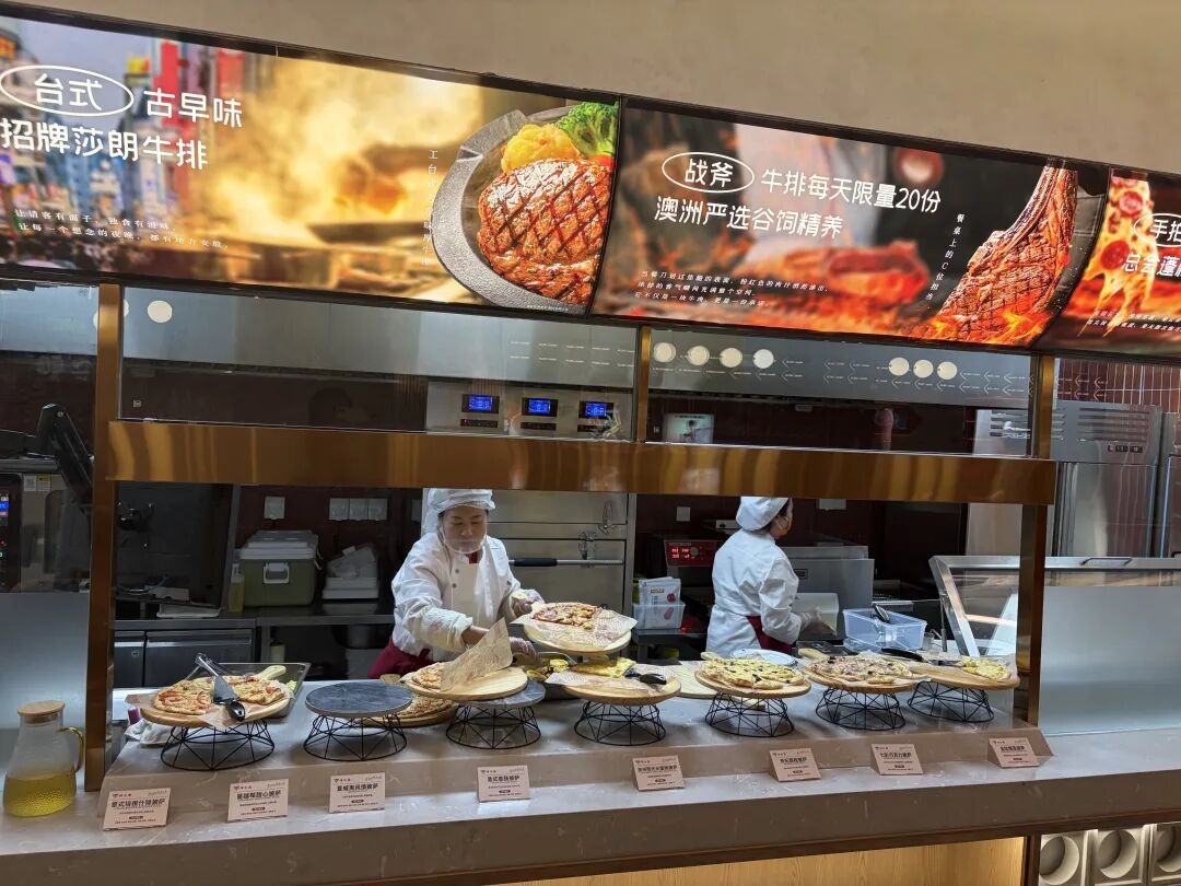 火鍋本質(zhì)上是“標(biāo)準(zhǔn)化”程度極高的品類,而“牛排+自助”的運(yùn)營難度則指數(shù)倍增。158款料理的實(shí)時(shí)供應(yīng),對后廚的動(dòng)線設(shè)計(jì)、SKU管理以及損耗控制提出了極為嚴(yán)苛的要求。