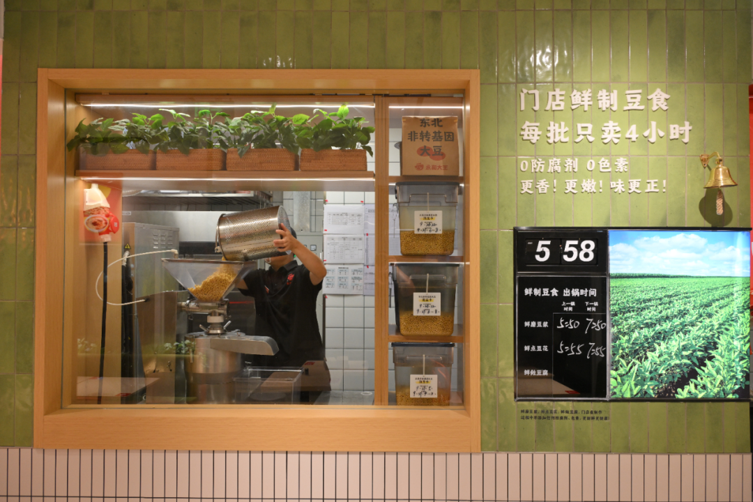 比如永和大王,在每家門店都標(biāo)配一臺自主研發(fā)的專用豆?jié){機(jī),嚴(yán)格執(zhí)行“每4小時(shí)新鮮現(xiàn)磨”的標(biāo)準(zhǔn),確保顧客無論何時(shí)進(jìn)店,喝到的都是溫?zé)岽枷、無添加的現(xiàn)磨豆?jié){;而像麻婆豆腐、豆花菜這樣的招牌菜品,則堅(jiān)持在門店現(xiàn)點(diǎn)現(xiàn)做,不走捷徑,只為還原食材本味與地道口感。
