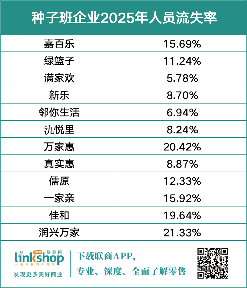 步步高、永輝的流失率改善同樣明顯。步步高調(diào)改店員工流失率從調(diào)改前的35%降至2025年的12%;永輝調(diào)改店通過“利潤共享+技能認證”,核心崗位員工流失率從28%降至9%,團隊穩(wěn)定性的提升不僅降低了招聘與培訓成本,更保障了服務的連續(xù)性。