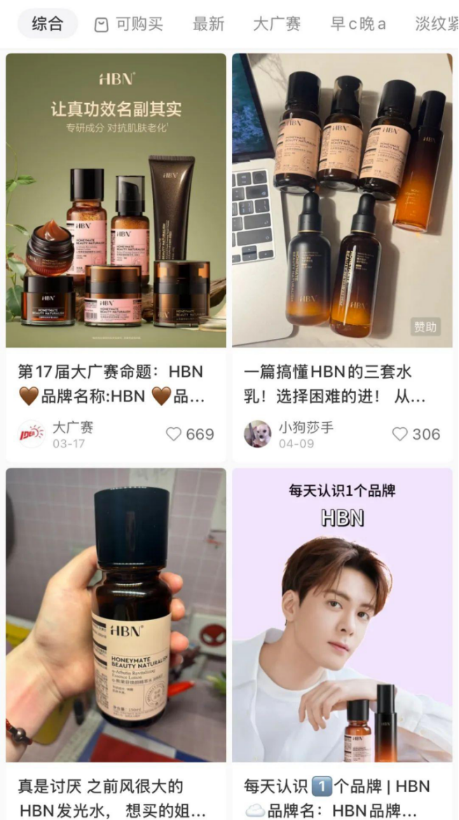 作為最早提出“早C晚A”概念的品牌之一,HBN提出“用數(shù)據(jù)說(shuō)話”的品牌主張,成功開拓了功效護(hù)膚這一細(xì)分賽道,俘獲了一群懂成分、重實(shí)效的“成分黨”。