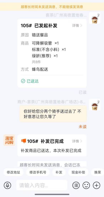 針對(duì)少送、錯(cuò)送、缺貨等導(dǎo)致消費(fèi)者高頻申請(qǐng)退單的問題,近日,淘寶閃購官宣升級(jí)了“商家服務(wù)工具箱”,面向所有餐飲商家全面上線了“補(bǔ)發(fā)餐品”、“協(xié)商換菜”、“小額補(bǔ)償”等功能,結(jié)合“防漏單”提醒功能和AI智能助手的策略建議,系統(tǒng)性提升商家經(jīng)營效率、售后服務(wù)能力與消費(fèi)者體驗(yàn),助力商家以更優(yōu)服務(wù)實(shí)現(xiàn)生意長期健康增長。