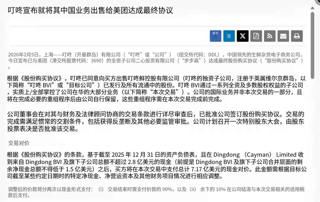 促使這一進程的重要事件,是2月美團以7.17億美元(約合人民幣49.81億元)全資收購叮咚買菜的一紙公告,由此也將行業(yè)從沉寂許久的內(nèi)卷消耗戰(zhàn)中,帶入了新時期。