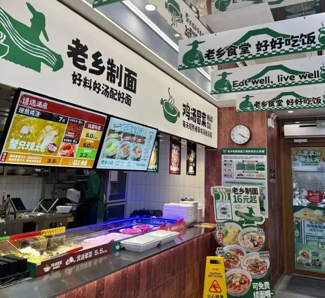 具體到產(chǎn)品上,該店的快餐區(qū)主打現(xiàn)炒,覆蓋早中晚時段,其中早餐提供包子、蒸餃等,午晚餐則以家常菜和湯品等老鄉(xiāng)雞主營的產(chǎn)品為主。新增冒菜區(qū)則含約14種葷菜、近20種素菜及3款湯底,與快餐區(qū)單點模式不同的是,冒菜區(qū)采用自選稱重計價,為消費者提供了多元選擇。