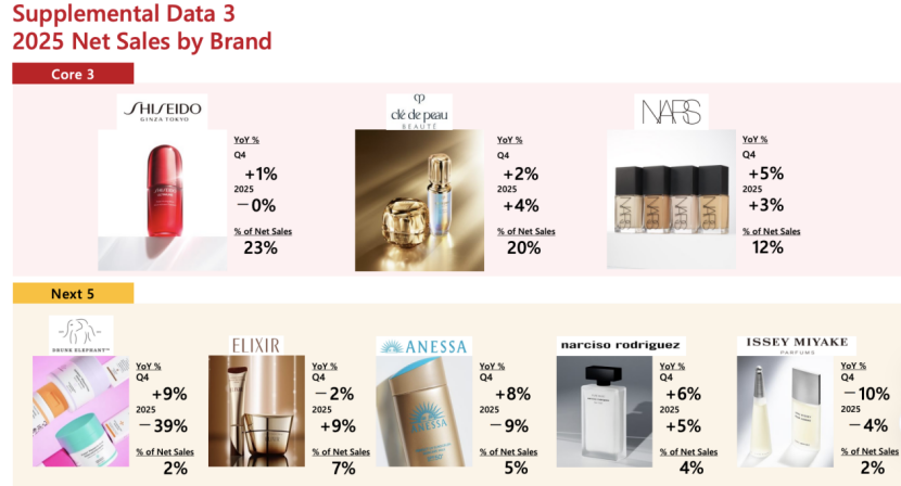 財(cái)報(bào)顯示,2025年核心品牌中,“資生堂”的凈銷(xiāo)售額保持持平;CPB凈銷(xiāo)售額增長(zhǎng)4%;NARS凈銷(xiāo)售額增長(zhǎng)3%。