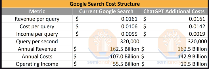 其二,傳統(tǒng)廣告變現(xiàn)路徑嚴(yán)重受阻。移動(dòng)互聯(lián)網(wǎng)時(shí)代,搜索廣告之所以高效,核心在于用戶意圖明確,平臺(tái)可通過標(biāo)簽化實(shí)現(xiàn)廣告與需求的精準(zhǔn)匹配。但在AI對話場景中,用戶意圖具有不可預(yù)測性、突發(fā)性與模糊性,強(qiáng)行植入廣告會(huì)顯著破壞交互體驗(yàn)與回答質(zhì)量。Semianalysis同樣指出,若將ChatGPT直接套用到谷歌現(xiàn)有搜索業(yè)務(wù)中,將造成約360億美元的收入損失,商業(yè)化沖擊迎來挑戰(zhàn)。