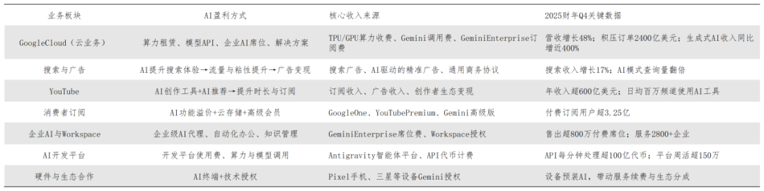 在成本端,AI技術(shù)的迭代更實(shí)現(xiàn)了顯著降本:2025財(cái)年Gemini服務(wù)單位成本降低78%,疊加自研TPU芯片與數(shù)據(jù)中心的規(guī)模效應(yīng),持續(xù)擴(kuò)大了盈利空間。谷歌的盈利實(shí)踐證明,只有將AI入口與既有現(xiàn)金流閉環(huán)(廣告、訂閱、企業(yè)服務(wù))深度綁定,才能破解“高DAU、高虧損”的行業(yè)魔咒。