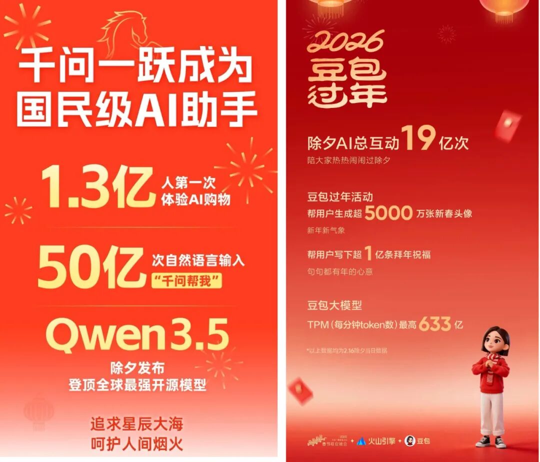 字節(jié)豆包憑借央視春晚獨(dú)家AI云合作伙伴身份,除夕單日全平臺(tái)互動(dòng)量達(dá)19億次,完成較大規(guī)模國民觸達(dá)。此前豆包發(fā)布的Seedance2.0,更是引發(fā)巨大漣漪。