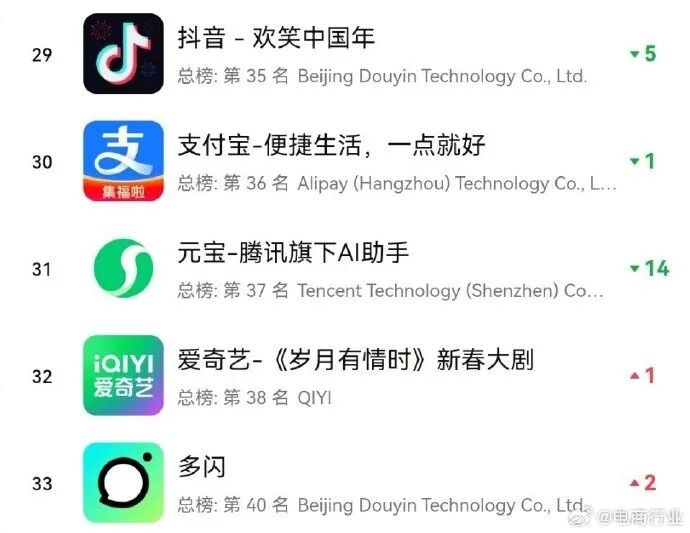 對比之下,騰訊元寶的春節(jié)戰(zhàn)役似乎略遜一籌。