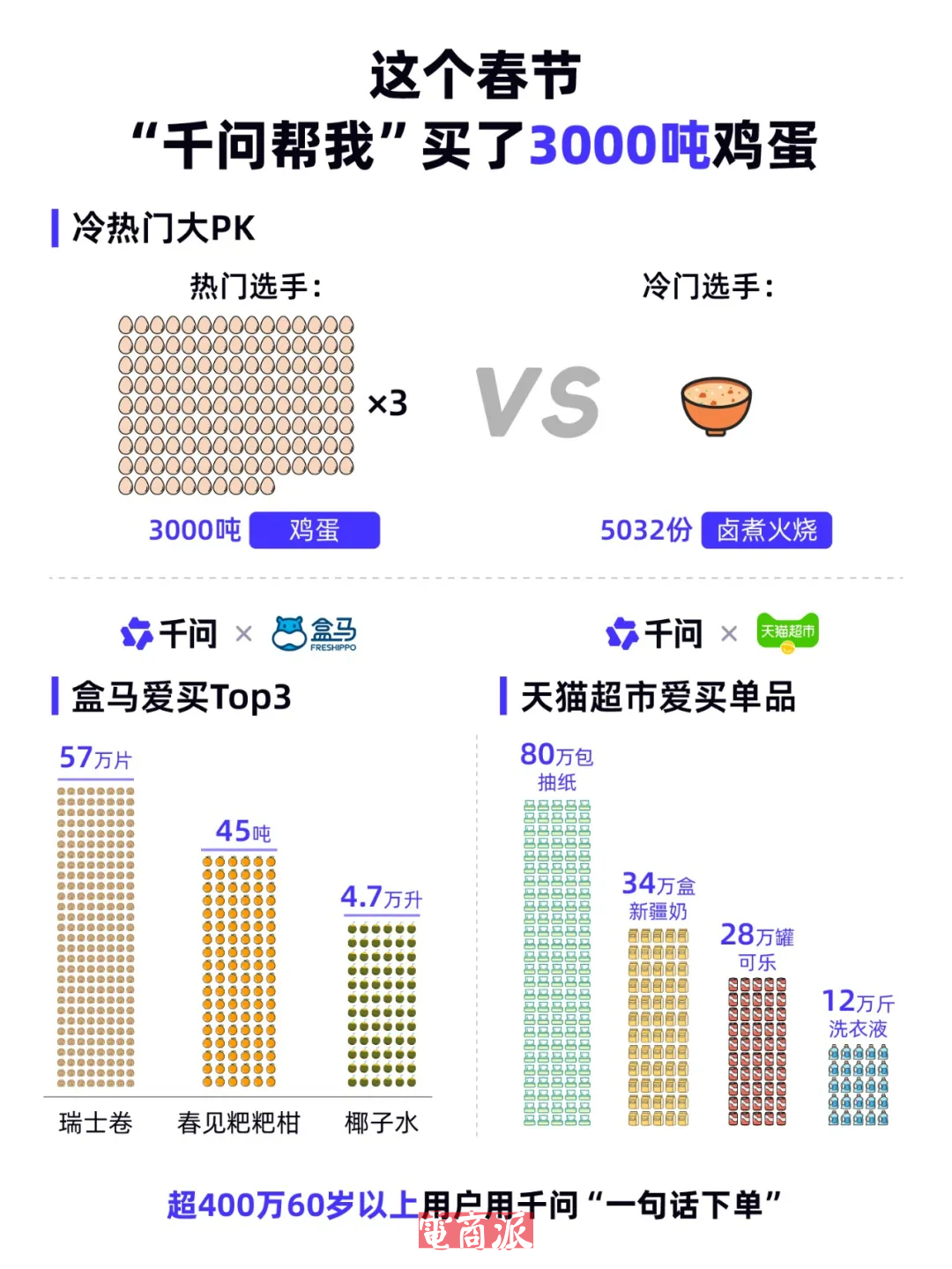一邊是阿里千問交出的驚艷成績單。官方數(shù)據(jù)顯示,用戶在千問上“一句話下單”近2億次,全國平均每10人就有1人在千問下單。