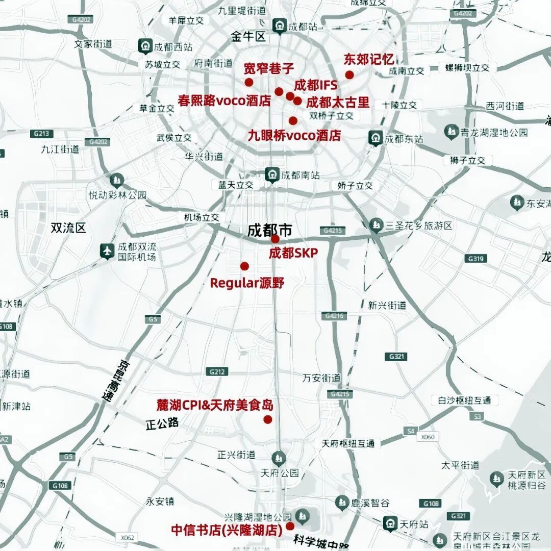 商場(chǎng)維度,我們看過(guò)春熙路周邊的成都太古里與成都IFS、杉板橋商圈的東郊記憶、滿足團(tuán)隊(duì)攝影師ETERLAINE要求專(zhuān)程而至的寬窄巷子,還有城南的成都SKP、Regular源野、麓湖CPI與麓湖天府美食島。