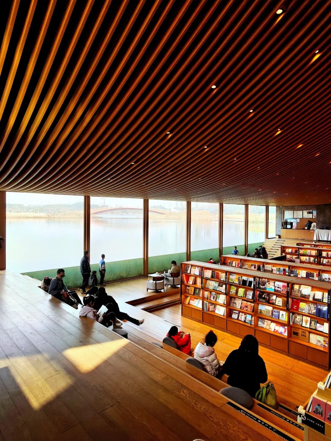 我們還一路向南至興隆湖畔,打卡了本地朋友熱切推薦的「成都最美水下書(shū)店」——中信書(shū)店(興隆湖店)。