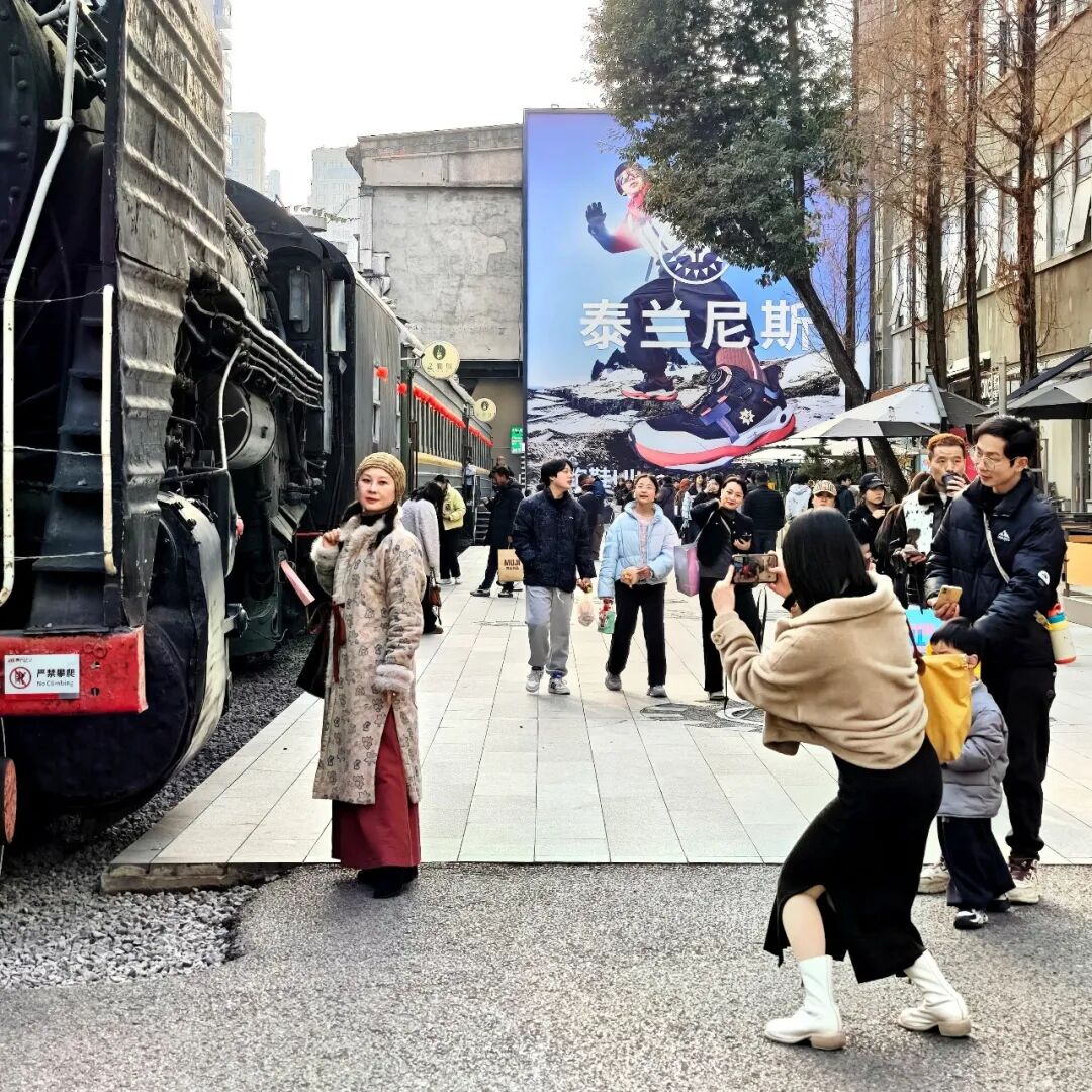 此次再來(lái)東郊記憶,人氣已不可同日而語(yǔ),火車(chē)頭周邊是熱鬧的市集,巨幅海報(bào)換成了泰蘭尼斯童鞋,整整四層的ONE MOMENT獨(dú)棟門(mén)店好逛也好拍,GUCCI也在此上新了2026全新廣告形象大片《相聚時(shí)分》。