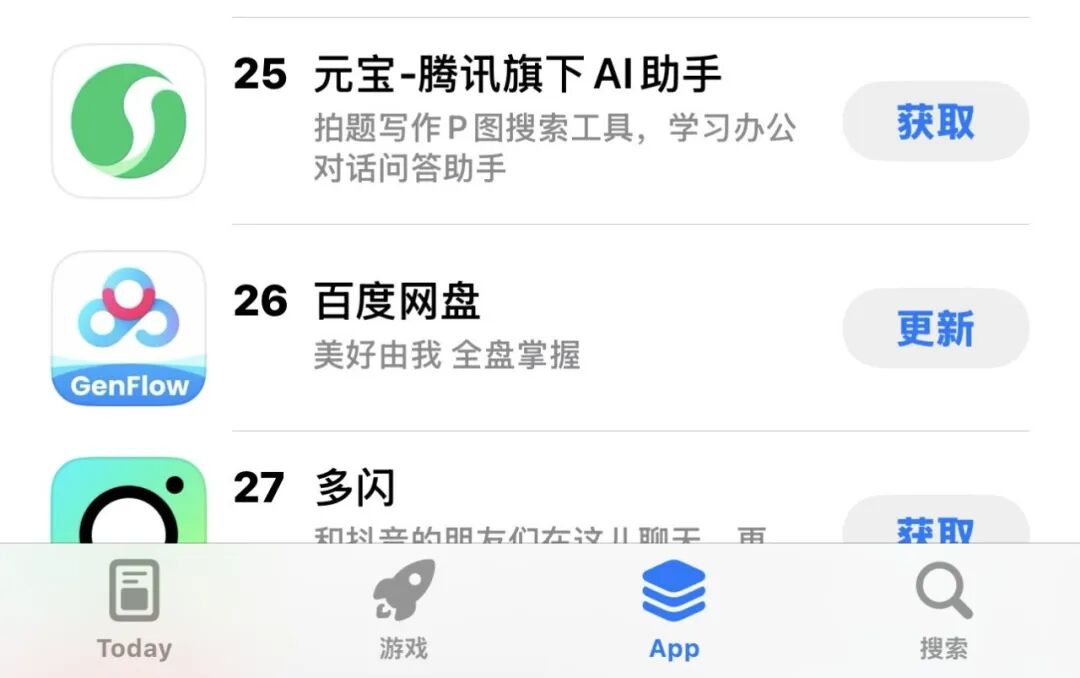 從最新蘋果App Store免費榜單看,豆包千問廝殺難解難分之際,元寶滑落明顯,一度跌出前三十名。熱度下滑外,略顯尷尬的是,如今打開元寶App,默認調用的居然是DeepSeek模型,而非自研的混元。在四家大廠中,騰訊是唯一未能將自有模型,作為對外競爭核心敘事的公司。同時寄予厚望的元寶派,也因為較為粗糙被用戶吐槽,很久未有人提及。