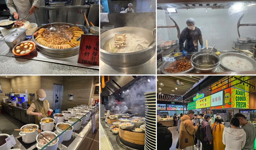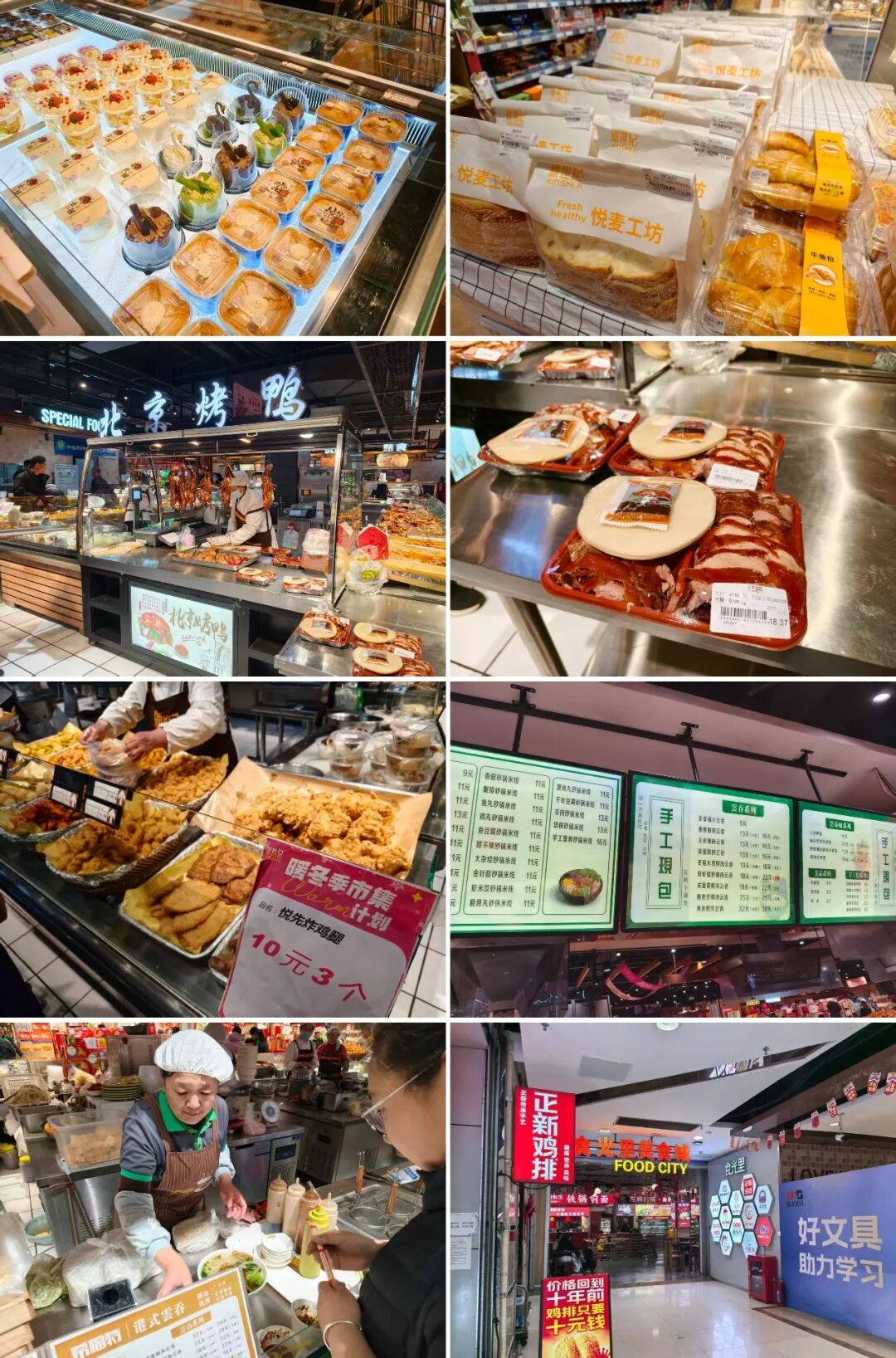 來到地下一層的超市,此刻已是人流如織。在這里,內(nèi)參君看到了多款網(wǎng)紅烘焙、當(dāng)日現(xiàn)烤的北京烤鴨、手工現(xiàn)包云吞、熟食鹵味等,煙火升騰,井然有序,甚至還新開了一個“食光里美食城”,燈火通明處,讓人恍惚到了北京的網(wǎng)紅商場,讓人不禁感慨“小縣城的消費(fèi)體驗(yàn)太好了!”