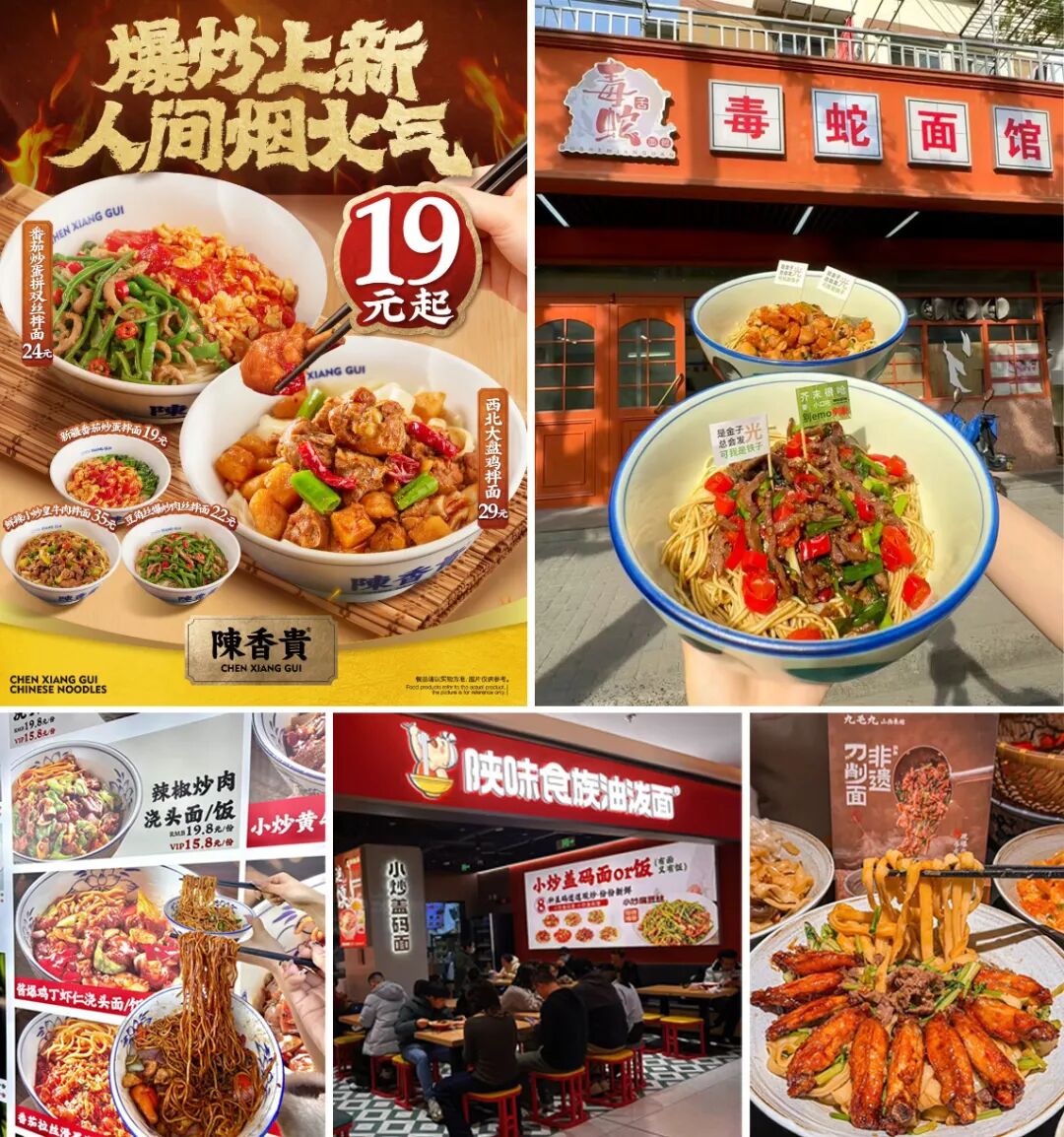 換品類:陜味食族上新“小炒蓋碼面”;五爺拌面則把1000多家門店全部更新為“爆炒澆頭”;