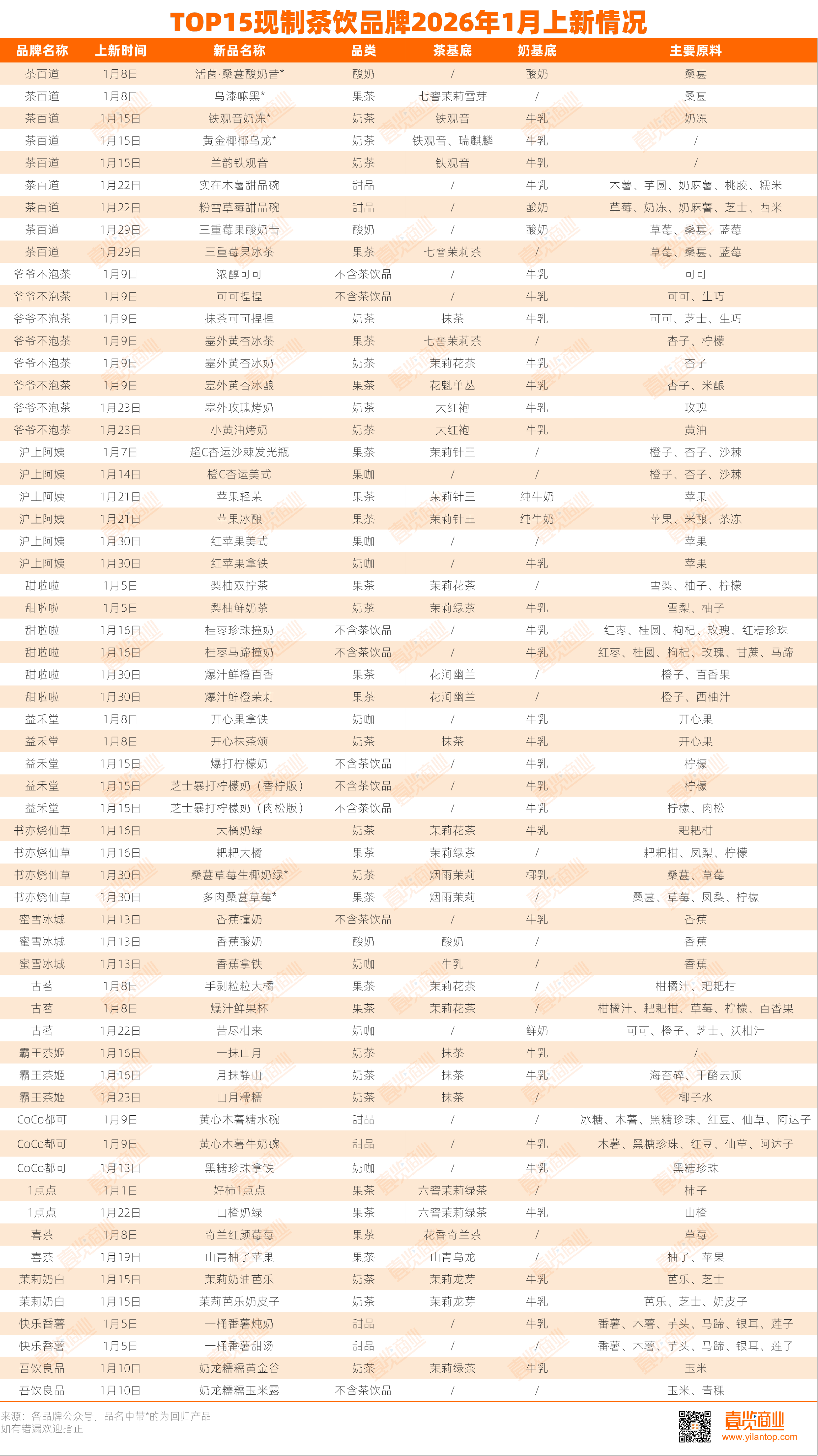 1月新品數(shù)據(jù):茶飲上新54款、咖啡上新25款
