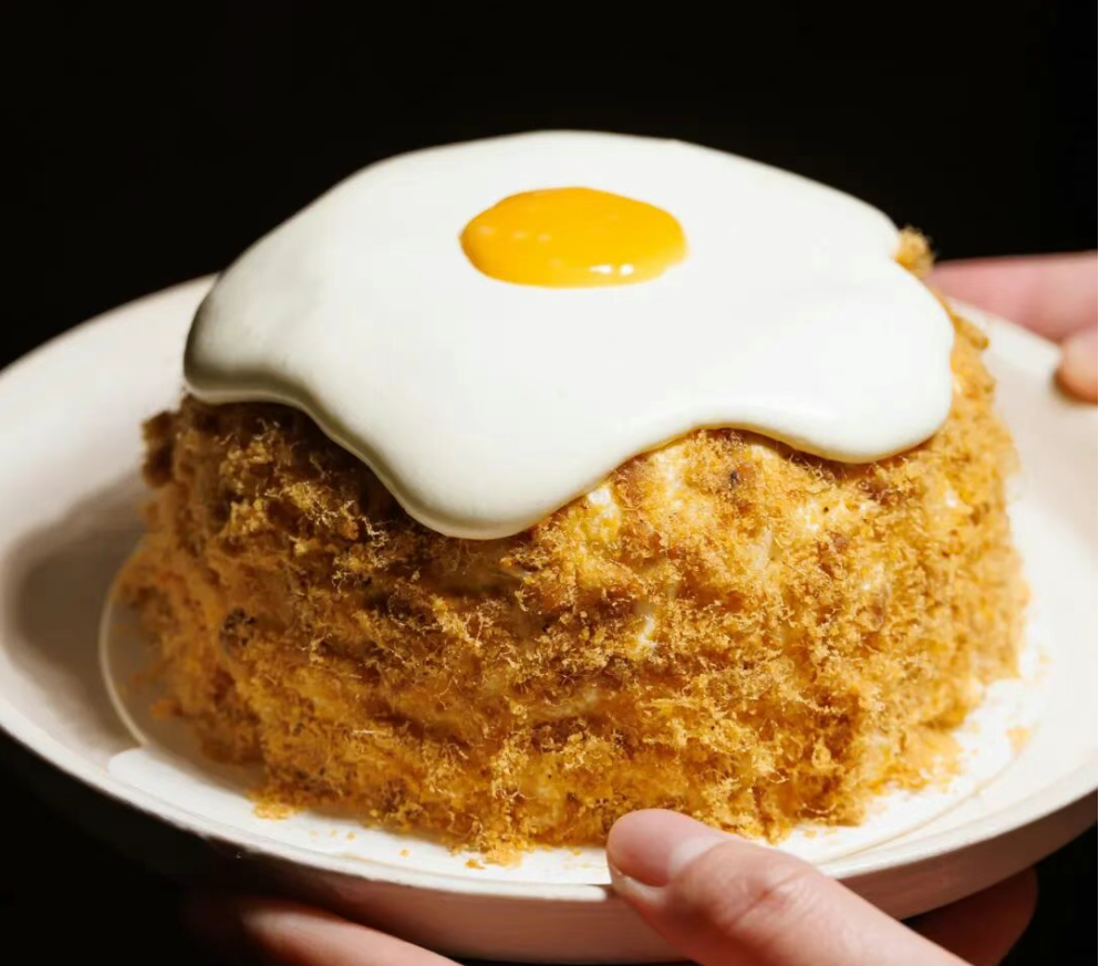 首次面向市場的全球首發(fā)新品,蛋糕實驗室的一顆“流心蛋”,用的是上海人最熟悉的“立豐”肉松。喜茶相關(guān)人士表示,這款蛋糕是復刻本幫菜的味覺習慣——咸鮮開場,奶甜收尾。