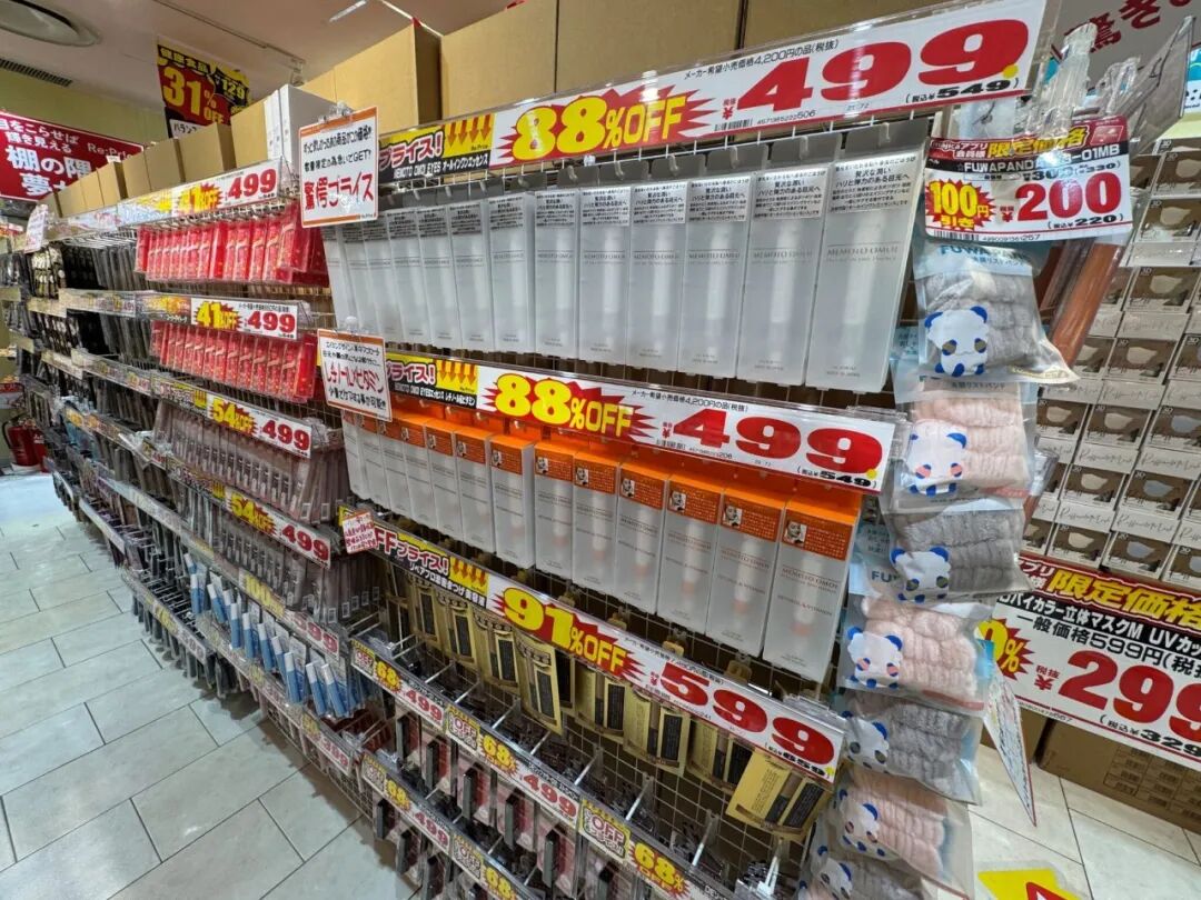 選品同樣經(jīng)過(guò)精心篩選。店內(nèi)SKU數(shù)量控制在2000至3000個(gè),雖然會(huì)因貨源波動(dòng),但整體由核心暢銷(xiāo)品、應(yīng)季商品與特價(jià)單品動(dòng)態(tài)構(gòu)成。品類(lèi)以“特價(jià)商品群”為核心,包括廠商滯留庫(kù)存、季末余貨等,主打知名品牌商品。值得一提的是,化妝品及護(hù)膚相關(guān)商品占比高達(dá)四成,這一比例遠(yuǎn)超唐吉訶德其他小型業(yè)態(tài)。
