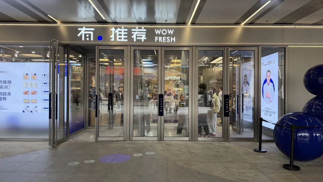 工作人員告訴我們,為了匹配商圈定位,“有.推薦”在單店投入上毫不吝嗇。該店僅設(shè)計裝修費用就達(dá)290萬元,門店還配套600余㎡的庫房,單店總投資超600萬元。這種重投入,并非單純的場景打造,而是為了構(gòu)建“信任壁壘”。不銹鋼的工業(yè)風(fēng)設(shè)計,與透明包裝的商品形成呼應(yīng),讓消費者直觀感受到“新鮮、干凈、專業(yè)”的品牌調(diào)性。